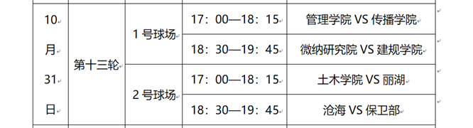 总医院 3:1 传播学院 丽湖教工 4:1 管理学院