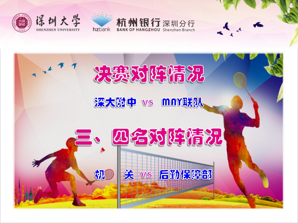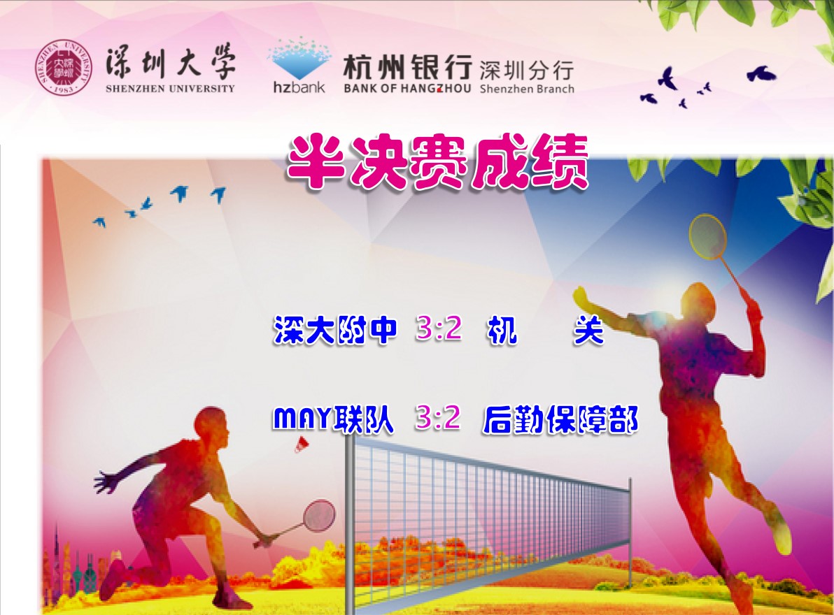 12月18日,“杭州银行杯”2021年深圳大学教职工羽毛球联赛进行了半决赛的精彩对决,深大附中、MAY联队各自苦战5盘战胜对手,携手挺进决赛。