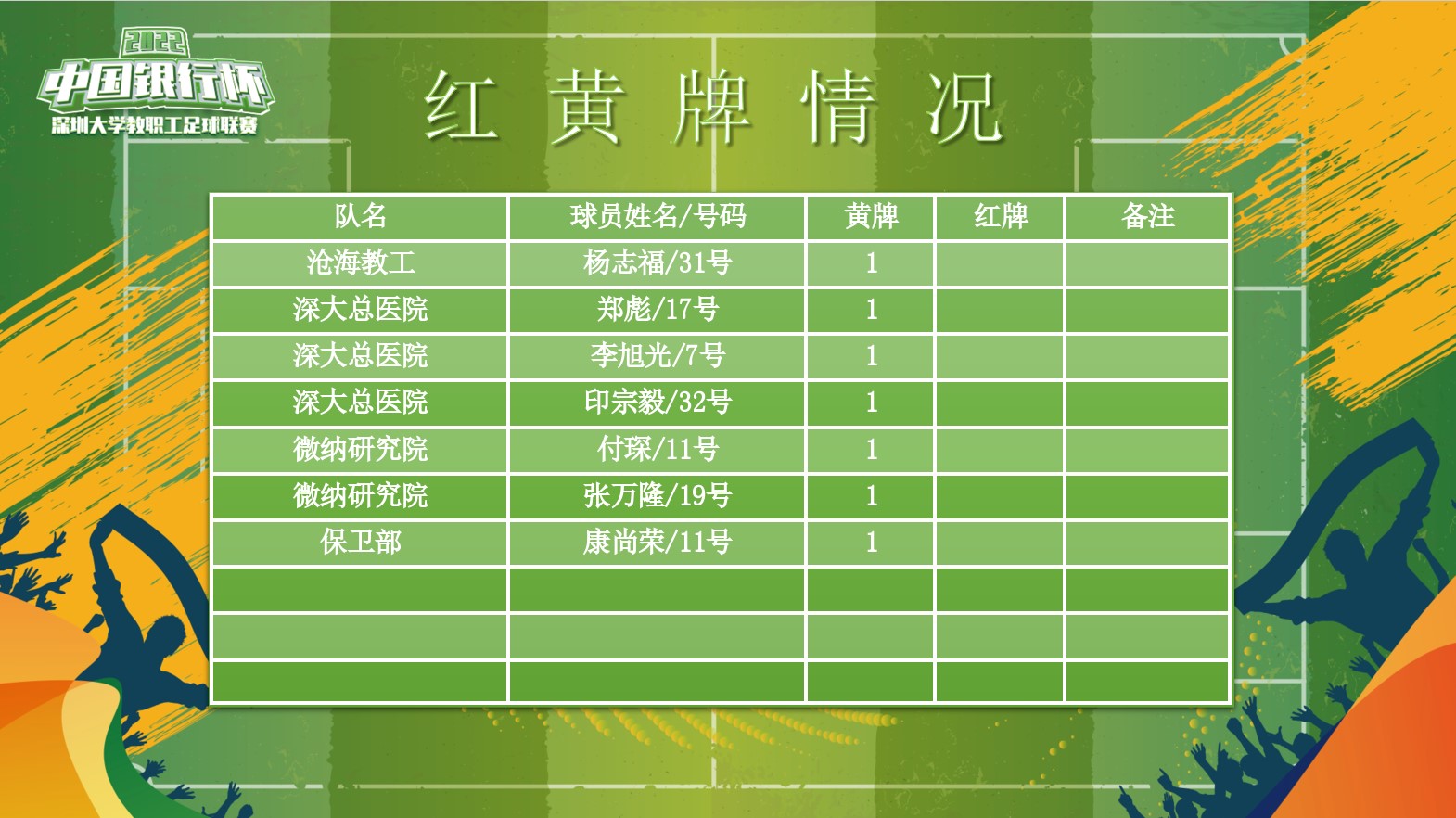 红黄牌情况: